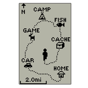 Wenn Sie neue Gegenden erkunden, brauchen Sie sich um den Rückweg nicht zu sorgen. Der Geko 201 kümmert sich darum. Das Gerät merkt sich den zurückgelegten Weg und zeigt ihn als dünne gepunktete Linie auf dem Bildschirm an. Aktivieren Sie einfach die TracBack®-Funktion des Geko, und Sie können Ihren Weg bis zum Ausgangspunkt zurückverfolgen. Speichern Sie bestimmte Stellen als Wegpunkte (bis zu 500), sodass Sie jederzeit Ihren Weg zurück an einen wichtigen Ort finden, z. B. zu Ihrem Zelt oder Ihrem Fahrzeug. Dabei können Sie auch mehrere Wegpunkte zusammenfügen, um Routen zu all Ihren Lieblingsplätzen zu erstellen und zu speichern.