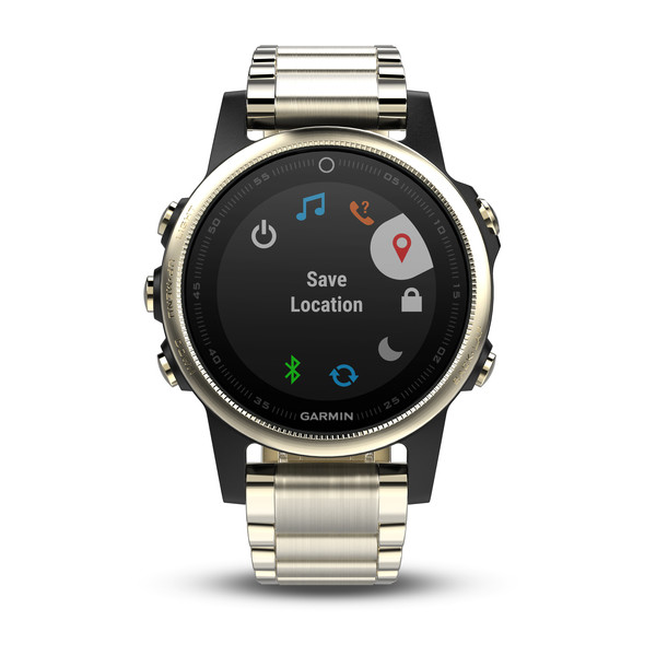 ® 5S Saphir Edition ist außerdem mit kratzfestem Saphirglas und WLAN zum automatischen Synchronisieren mit Garmin Connect ausgestattet und enthält im Lieferumfang ein zusätzliches QuickFit