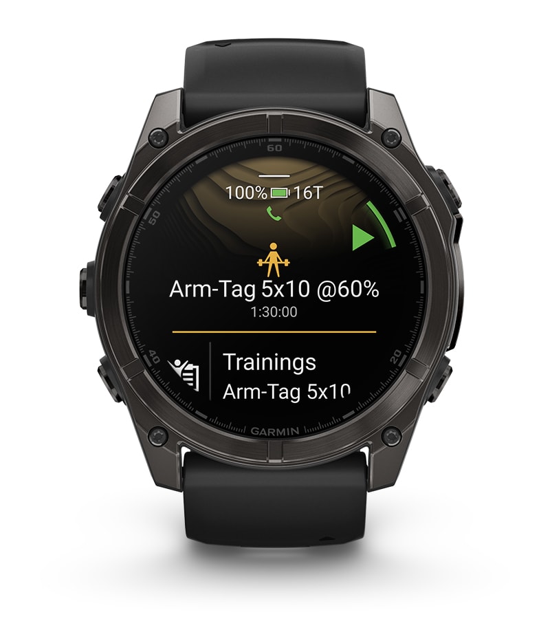 Die fēnix® 8 Multisport-Smartwatch für ambitionierte Sportler*innen und Outdoor-Begeisterte, die ihre Grenzen pushen wollen. Mit erweiterten Krafttrainingsfunktionen, Tauchzertifizierung, Lautsprecher- und Mikrofonintegration für Sprachfunktionen, einer integrierten LED-Taschenlampe und mehr.