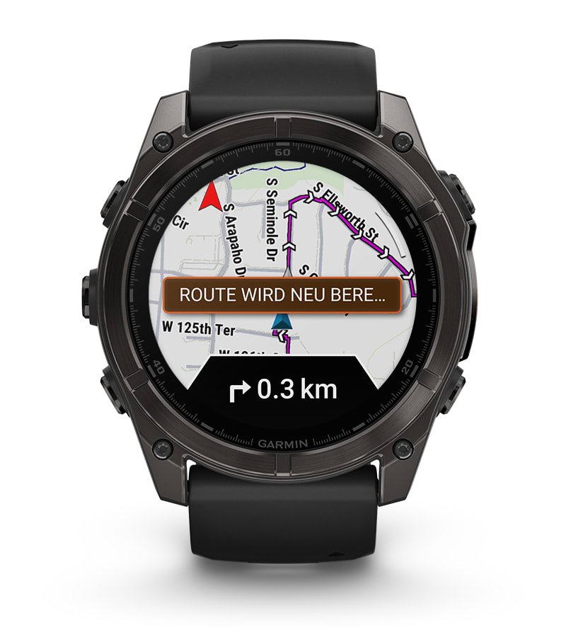 Beim dynamischen RoundTrip Routing gibst du die gewünschte Distanz ein und erhältst Routenvorschläge von deiner Smartwatch, um rechtzeitig wieder am Startpunkt anzukommen. Sieh dir auch Geländekonturen auf TopoActive-Karten an und greife auf vorinstallierte Karten für Golfplätze und Skipisten auf der ganzen Welt zu.