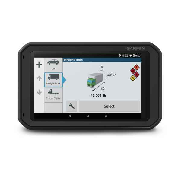 Das Garmin fleet 770-Gerät ist mit WLAN und Bluetooth ausgestattet und ermöglicht so den Internetzugriff, den Anschluss von Peripheriegeräten Dritter, darunter Kameras für die Fracht, den Blick zur Seite und das Zurücksetzen, sowie – eine der wichtigsten Funktionen – OTA-Karten-Updates.