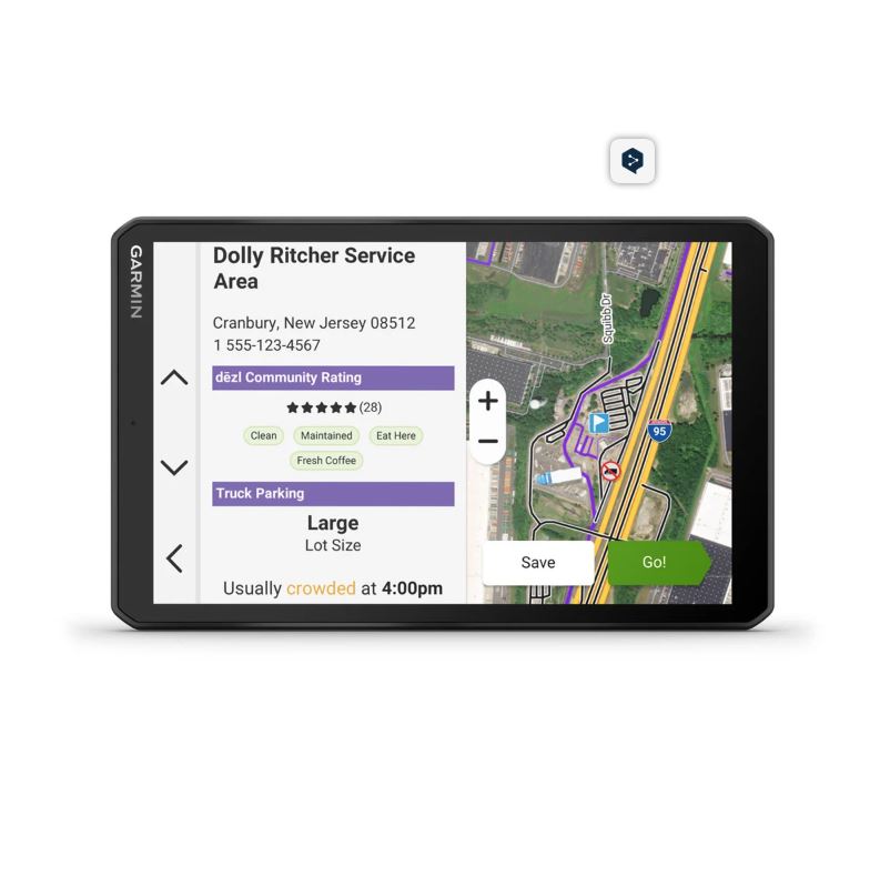 Mithilfe der Daten von Truck Parking Europe kannst du LKW-Parkplätze entlang der Route finden. Filtere die Daten nach bevorzugten Einrichtungen, z. B. WLAN, Duschen, Sicherheitsgrad u. v. m. Verbinde dich mit der Garmin dēzl™-App und sieh dir die Parkplatzverfügbarkeit an, damit du nicht einen überfüllten POI aufsuchst.